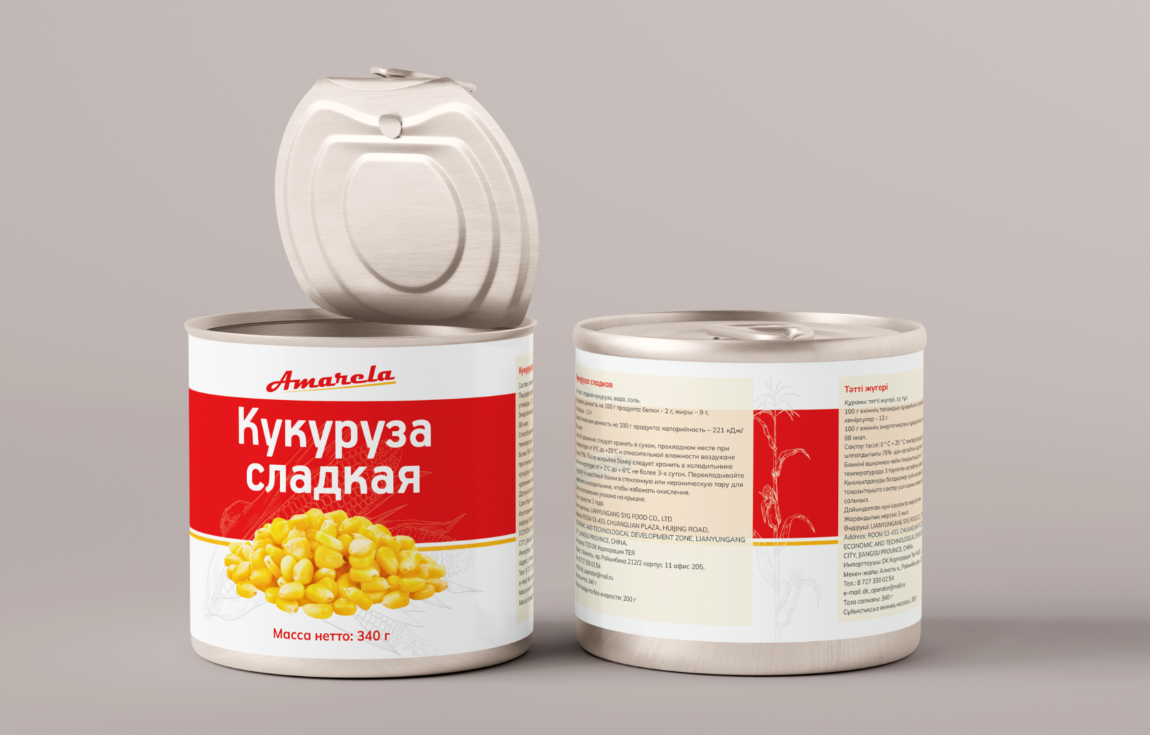 Клиент — компания Amarela, производитель консервированных овощей из Китая, — обратился к нам с просьбой обновить дизайн этикетки для их флагманского продукта: сладкой кукурузы в банках по 340 граммов. Основные рынки сбыта — Россия, Казахстан и другие страны СНГ, где продукт должен выделяться среди аналогов от Bonduelle или Green Giant. Ключевые требования: